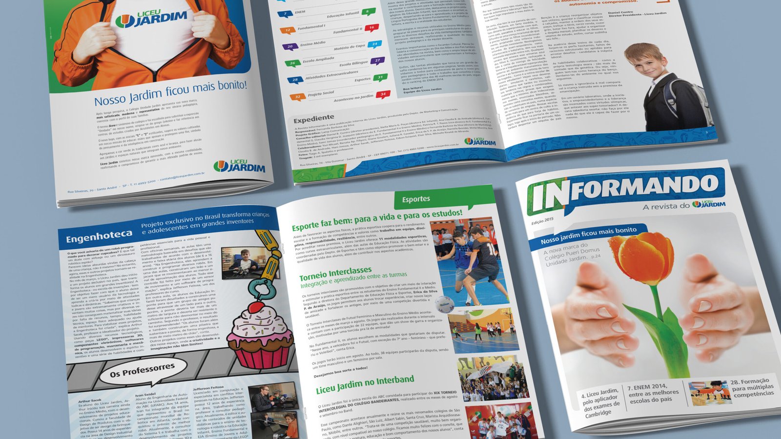 O desafio foi reinventar a identidade de um colégio em transição para sua própria metodologia de ensino. Precisávamos criar um novo nome e uma identidade visual que refletissem essa mudança e a nova abordagem pedagógica. O novo nome, Liceu Jardim, foi escolhido para transmitir tradição e prestígio, conectando-se com um ambiente educacional acolhedor e enriquecedor. Para a identidade visual, desenvolvemos um design com uma estética moderna e cores vibrantes, é como se cada aluno encontrasse no Liceu Jardim um espaço onde seu potencial floresce, unindo tradição e inovação com calor e alegria.